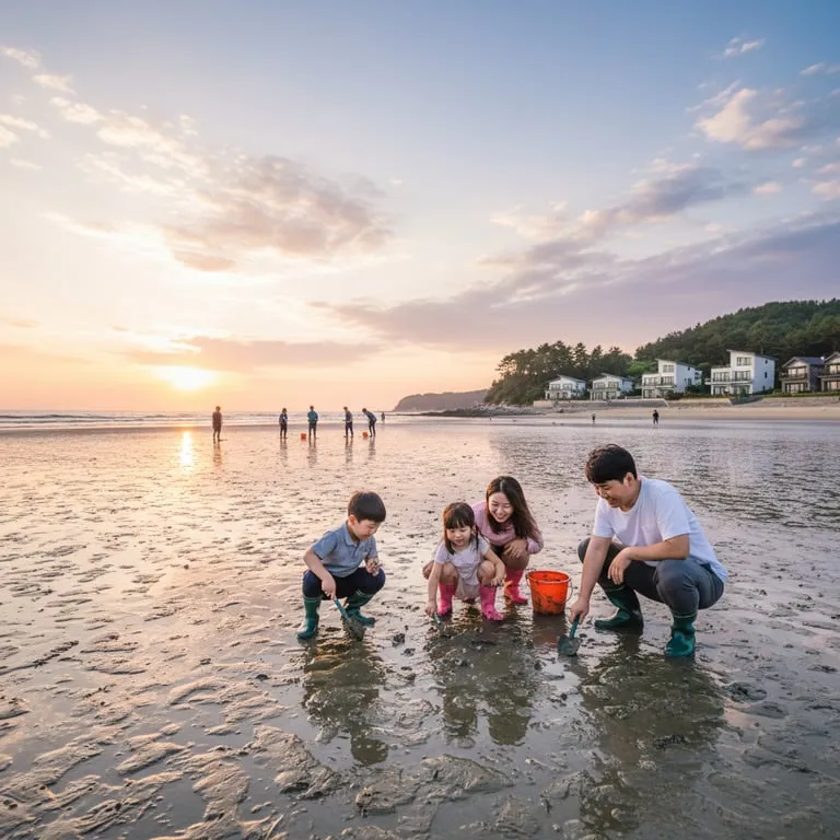 서해안 갯벌 체험 가능한 가족 여행지 추천, 아이들과 함께 조개 캐기 좋은 해수욕장과 근처 펜션 정보 게시물 읽기"